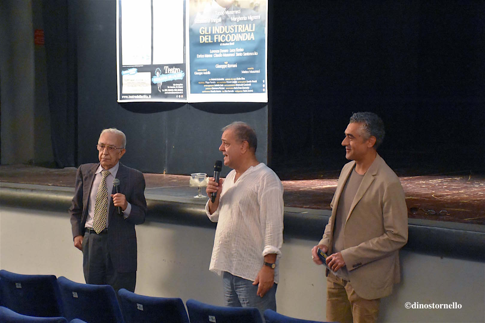 Il debutto della XII stagione del Brancati, giovedì 24 ottobre, è affidato alla produzione Gli industriali del ficodindia, di Massimo Simili che vede in scena un ineguagliabile Tuccio Musumeci nei panni del ragioniere Scillichenti, impegnato nell’incredibile vicenda raccontata dallo scrittore siciliano negli anni ’60. Ad affiancarlo Sebastiano Tringali nel ruolo di Don Ferdinando Nuscarà e Margherita Mignemi in quello della governante Antonia (completano il cast Luca Fiorino, Lorenza Denaro, Claudio Musumeci, Enrico Manna, Santo Santonocito). La realtà del fatto di cronaca che ha ispirato “Gli industriali del ficodindia” supera l’immaginazione, come sottolineò lo stesso Simili, abilissimo nello stigmatizzare, in pieno miracolo economico, vizi e virtù della società e un imbroglio messo a punto da “approfittatori d’altissima classe”.